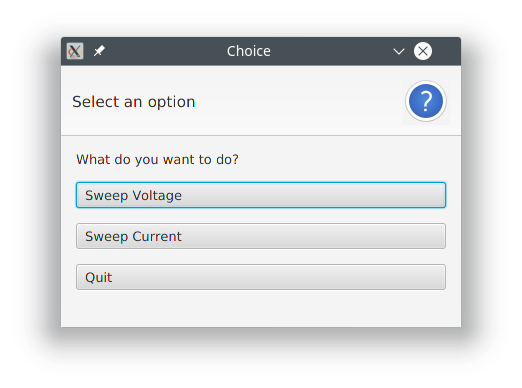 );This will create a dialogue with buttons to represent each option. Clicking a button will close the dialogue and return an integer representing the button that was pressed (starting at 0 for the first button).