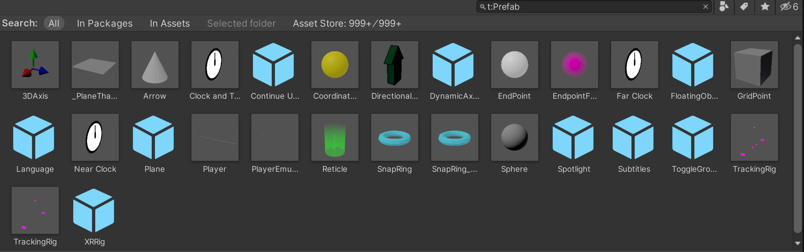 - Click on the Favorites section, then select All Prefabs to view all prefab assets.