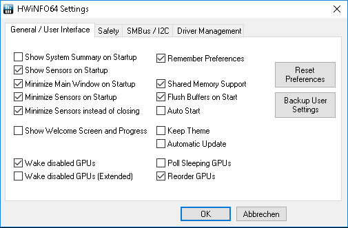 Next we have to change some settings in HwInfo like in the following screenshots (make sure the Status is installed under Driver Managmenet in the HwInfo Settings):