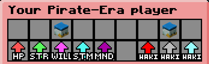 Pirate-Era works with a stat system, within Pirate-Era your character can grow in 5 different stats.
