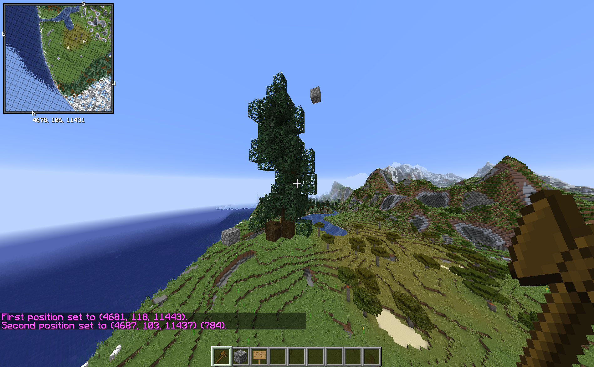 - Make a WorldEdit selection including your structure. (The cobblestone shown in the image was for making the