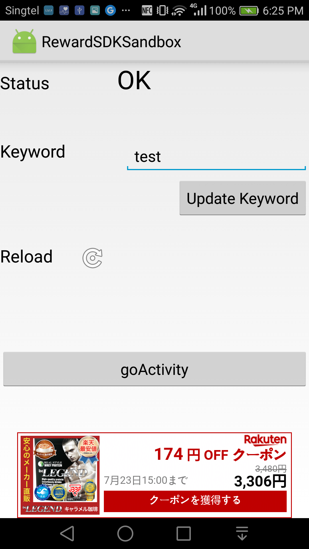 楽天リワードSDKの広告では検索ワードに連動した広告(クーポン)を配信しております。