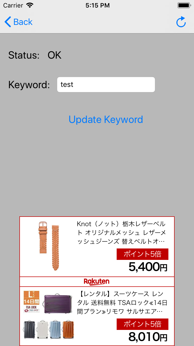 楽天リワードSDKの広告では検索ワードに連動した広告(クーポン)を配信しております。 特定のワードやユーザ入力に連動した広告を出す場合は以下のメソッドを使って検索ワードを更新します。