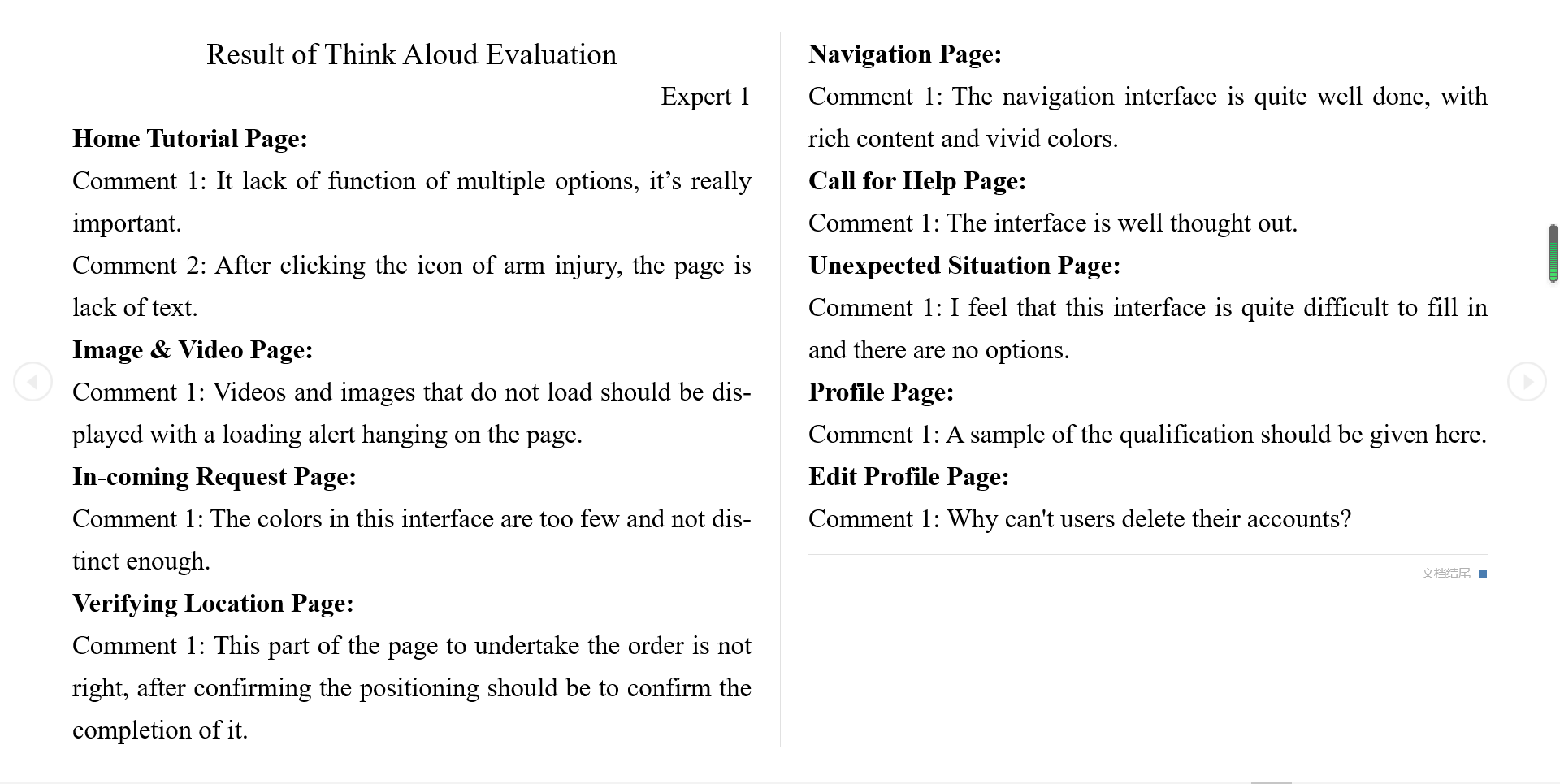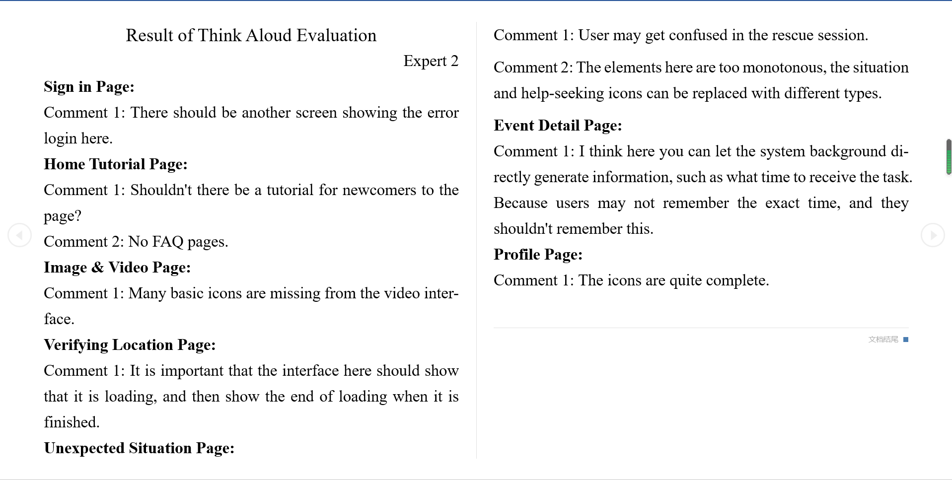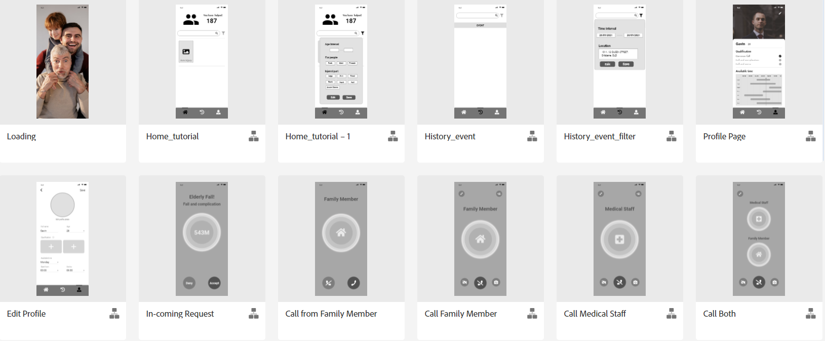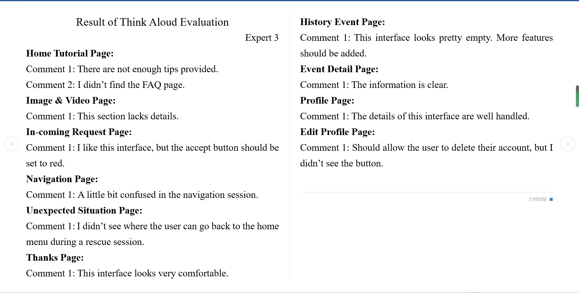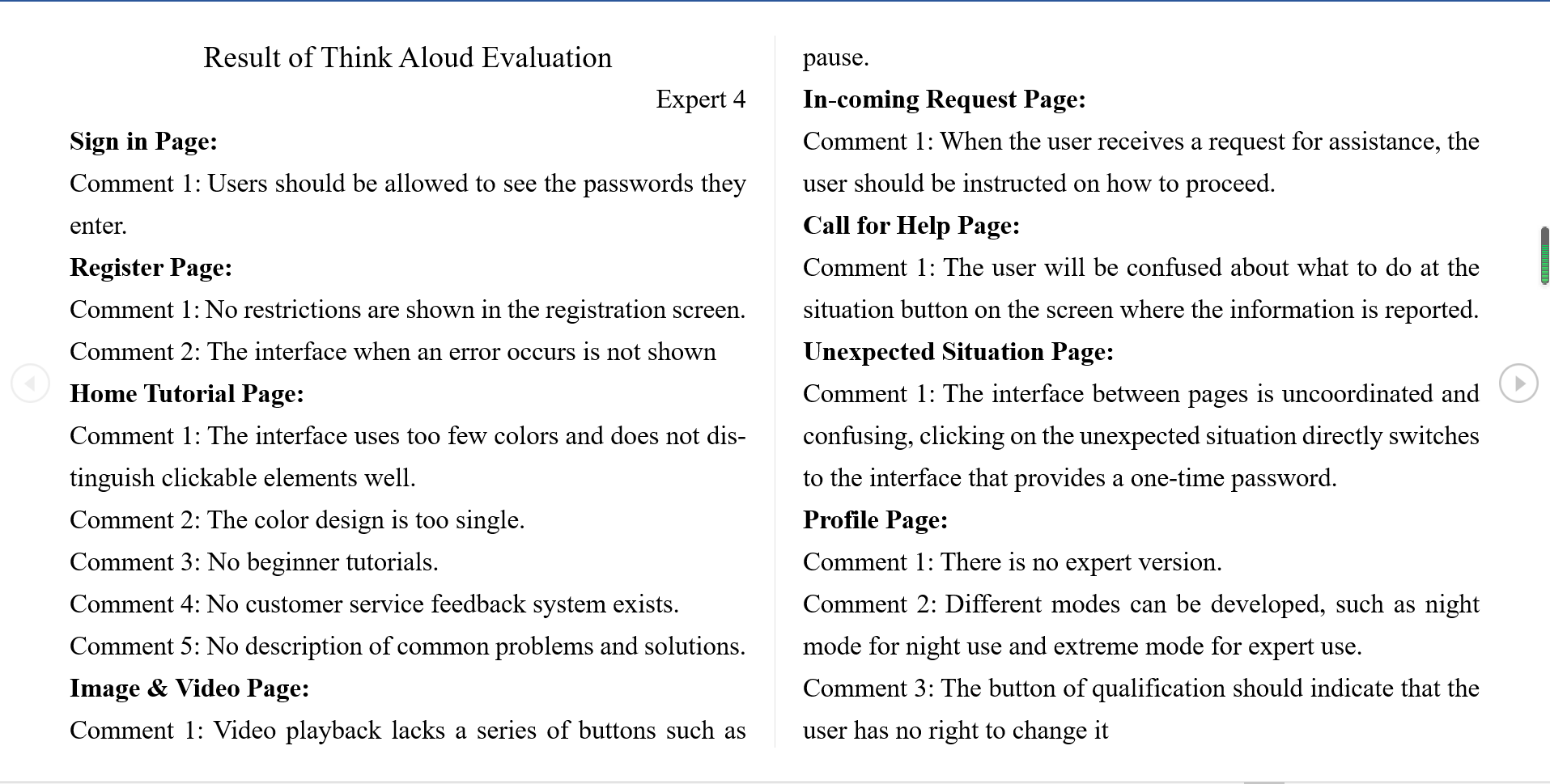 - This participant looks through some pages for no more than 1 minute, such as the "Sign in the page", "Register page", "History Event page", "History Filter page", "Profile page", "Edit Profile page", "Call for Help page", "Unexpected Situation page" and the "Thanks page".