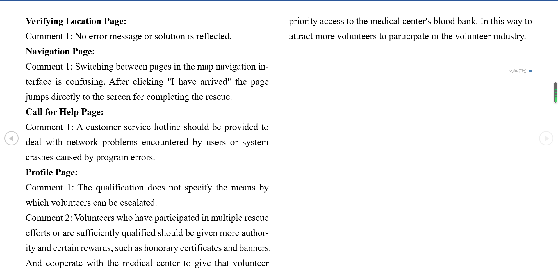 - Many participants argue that the rescue session, which offers a contact portal to medical staff and the family member of the patient, should not end just after the user arrived at the site.