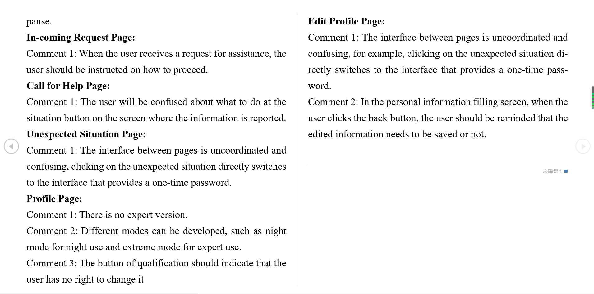 - However, they did stay somehow longer on the "In-coming Request page", "Navigation page" and the "Call for Help page" which means these sorts of pages may be a little bit complicated for new users.