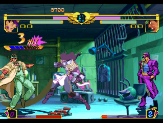 This is actually 2 different versions of this game packed into one: JoJo's Venture and JoJo's Bizarre Adventure: Heritage for the Future. Both are fighting games, similar in style to titles like Street Fighter III.