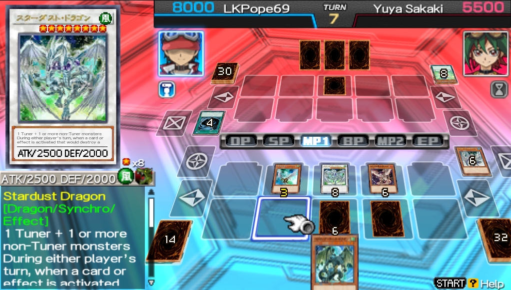 TF7 was released only on Japan (Konami really don't know how to handle their IPs looks at Castlevania), but a group of fans translated most of the game to English so it's easy to play (there are PT-BR and Spanish translations too) and the game follows the same format of choosing one of a few partners from each anime season (Classic, GX, 5D's, Zexal and Arc-V), playing against iconic characters in single duel, tag duel, or partner duel until you fill a heart, win a story event duel, and after 4 times you finish his/her story and win a iconic card like Blue-eyes White Dragon when playing with Kaiba as a partner.