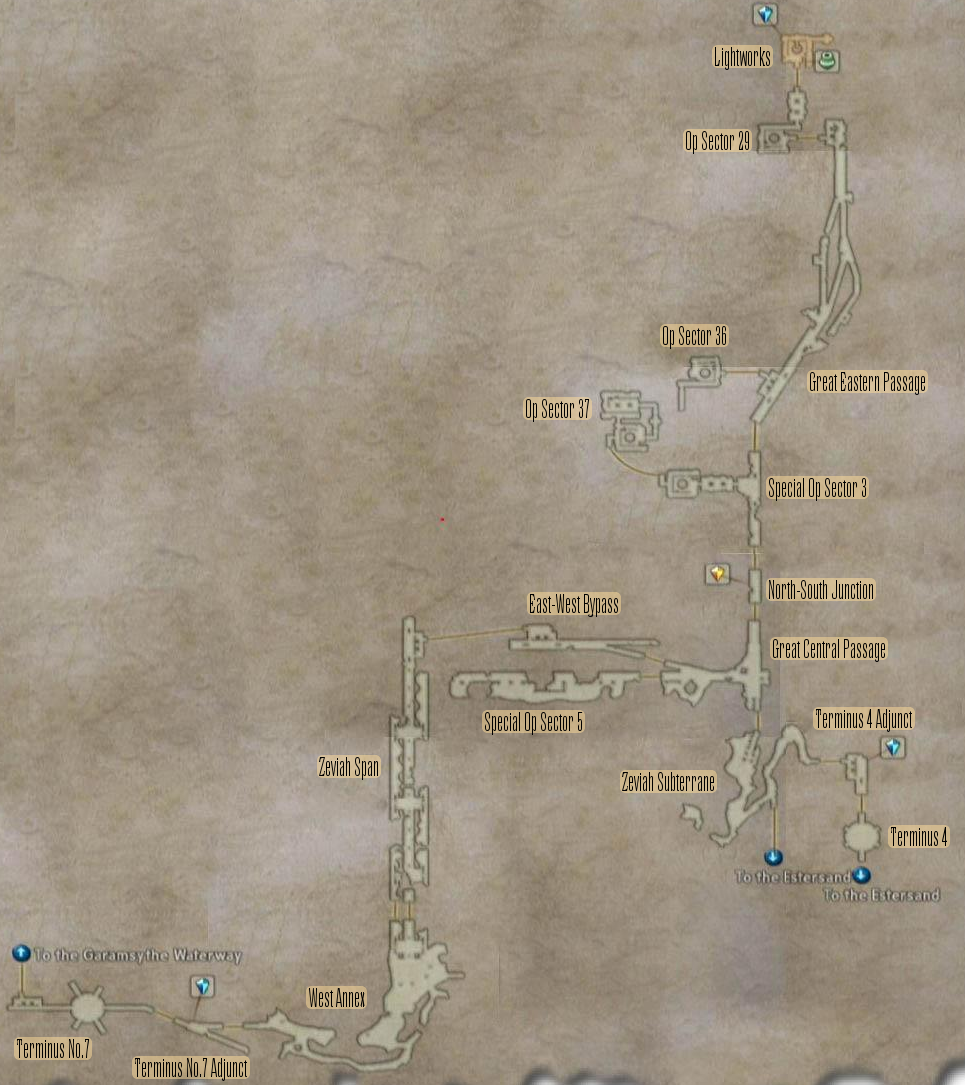 To get to Zertinan Caverns, start from Rabanastre and go to the Westersand. Go through until you reach Shimmering Isle, then proceed west into that area until you reach an entrance leading underground. Once there, keep going southwest until you see a boulder you need to push into the quicksand. Hurry past the Buers since they are too dangerous to fight right now. The next room you reach will be the one with the save point, and the path you need to traverse in that room will be invisible on the map.