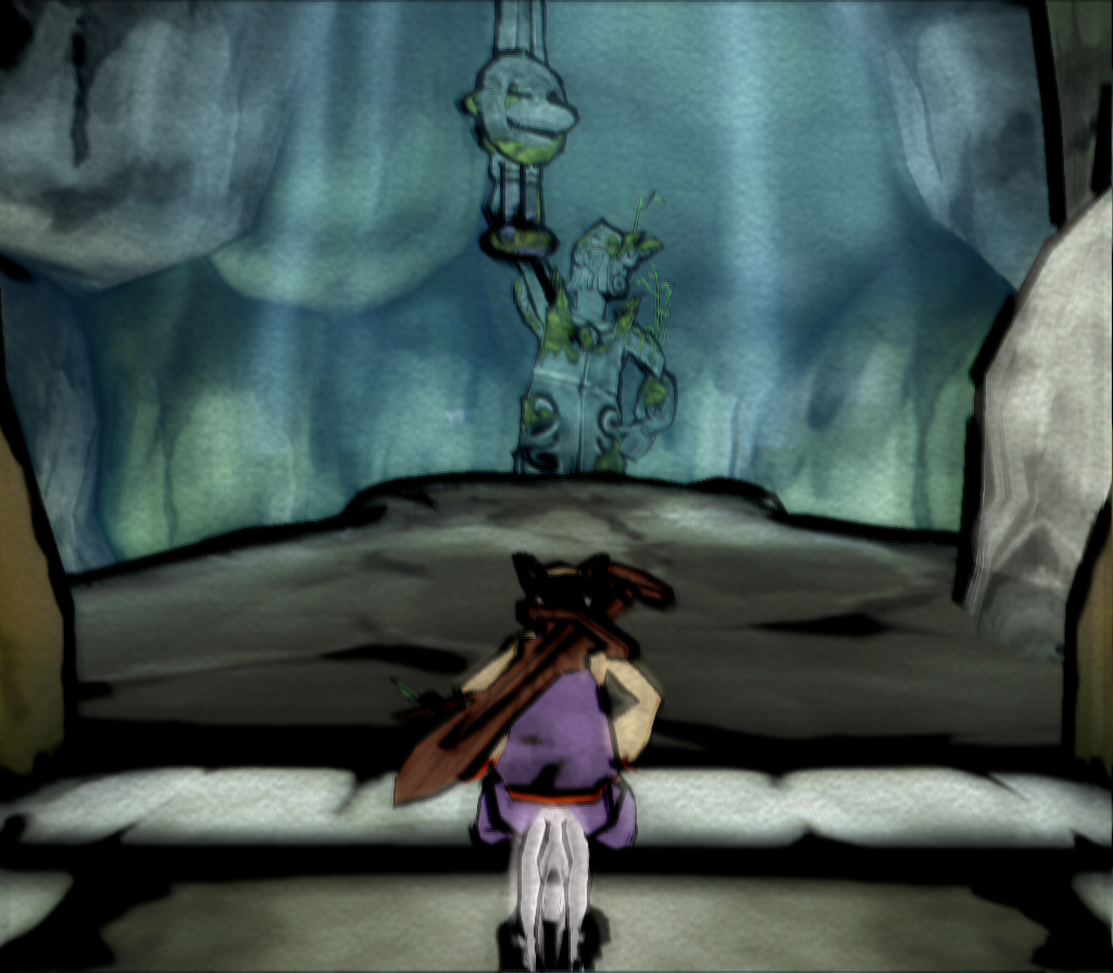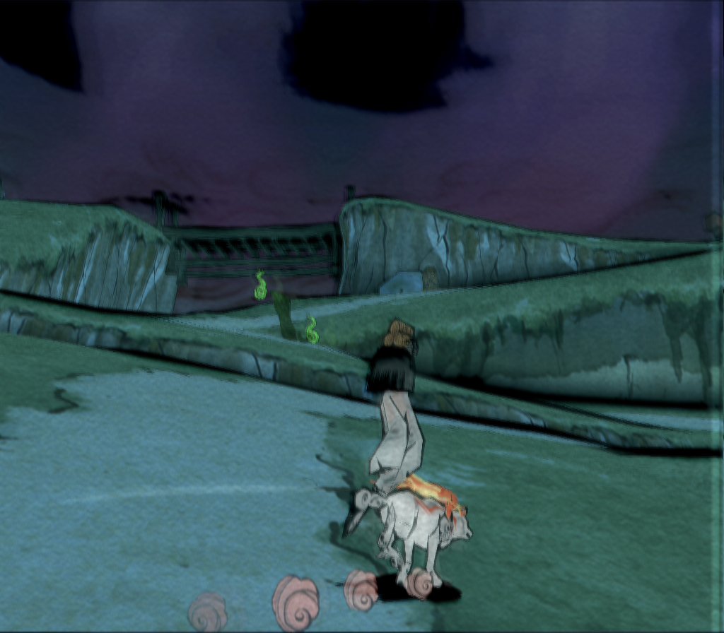 At this point in the story, Orochi has sent a sacrificial arrow marking the top of Kushi's residence, and dooming her to a horrible fate. She asks Amaterasu to carry her through Shinshu field towards the Moon Cave so that she may offer herself to Orochi. Kushi will change her outfit and sit on Amaterasu's back, and when this happens the music will change to be a triumphant, yet somber song called "Kushi's Ride".