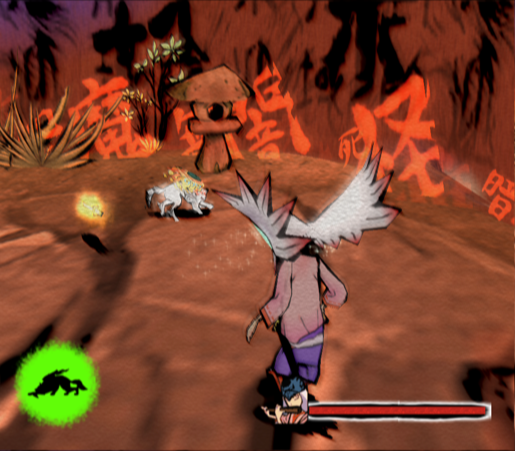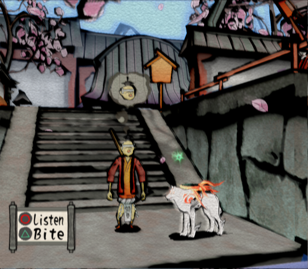 Okami is a wonderfully balanced game created by a team of people who really understand how to create a battle system: every weapon is viable and this is totally up to choice. My preference has always been Glaives; you can charge them up for devastating attacks which can make many fights trivial. Reflectors have the ability to, well, reflect. By pressing Triangle, you can reflect and counter some attacks. You'll know you have done a successful counter as Amaterasu will grab the enemy, throw them in the air, then strike down on the enemy. Beads are an attempt at range attacks, some can be chained together like a whip while others can be shot out like a gun. Weapons can also be upgraded to be more powerful with gold dust, which can be purchased or found throughout the game. Once you find what weapon you like the most, upgrade it with gold dust.