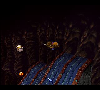Warp to Large Underground Mine - Pipe Area and go to the chains under the Hot Spring area. Jump from the rightmost chain and glide to the right - there's a floating gem along the far wall (it may be possible to grab this before defeating the Evil Flame Pig if you flap fast enough).