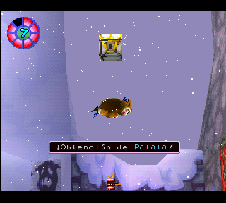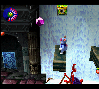 Return to the top of the icy pole and look to the right. You'll see a few floating gems here; if you jump off and flap your wings, you can collect four total.