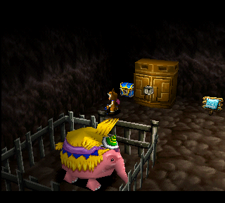 There are more gems in the Laughing Crying Forest area, but they are tough/unsafe to grab until the Evil Ghost Pig is defeated. However, this is a good time to use some Magic Wings to open a couple of special doors. In the forest, eat a Laughing Fruit, then warp to Large Mine Underground - Trolley Entrance to collect the Normal Fruit behind the Laughing Door. Warp back to the Laughing Crying Forest for a Crying Fruit, then collect the Mystery Mushroom behind the Crying Door on the back-most layer of Kujara Ranch - Ranch Summit.