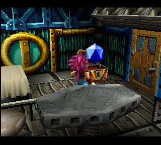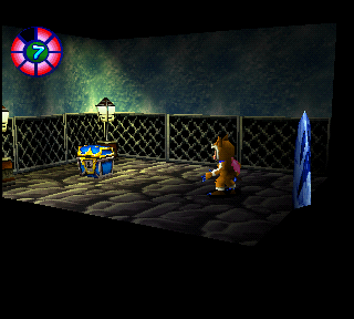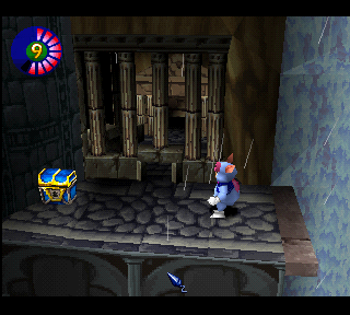 Now return to the start of this open area. The rightmost seesaw end is near a blue chest and two gems.