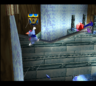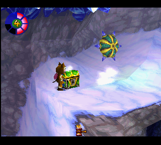 You'll land near the icicle we ignored earlier - with the Squirrel Suit equipped, you won't slip off it. Jump on and grab the gem to the right.
