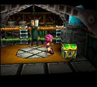 To the right of the Windmill in the background layer, you'll see a green chest. This contains a gem. You should be able to collect it easily (jumping straight up off of it lets you grab the crank right above), but if something goes wrong, just travel from the Windmill to the Pipes Area and back to respawn the chest.