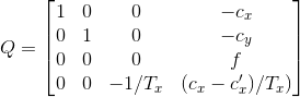 - There are 5 Intrinsics: focal lengths: fl, fk; 2 offsets; 1 skewness