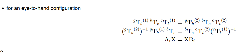 gTb = T_gripper_base bTc = T_base_camera cTt = T_camera_board X = X^(-1)-