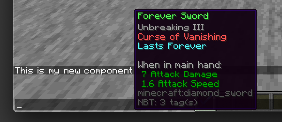 We can also add an insertion. This means when the player shift-clicks on the text, that text is copied into the chat.