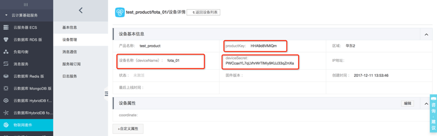 Fill in update information as followed. Fill in ALINKTEST_LIVING_LIGHT_ALINK_TEST in "设备型号", and uuid can be got by inputing uuid at cli when the board is connected to Alink.