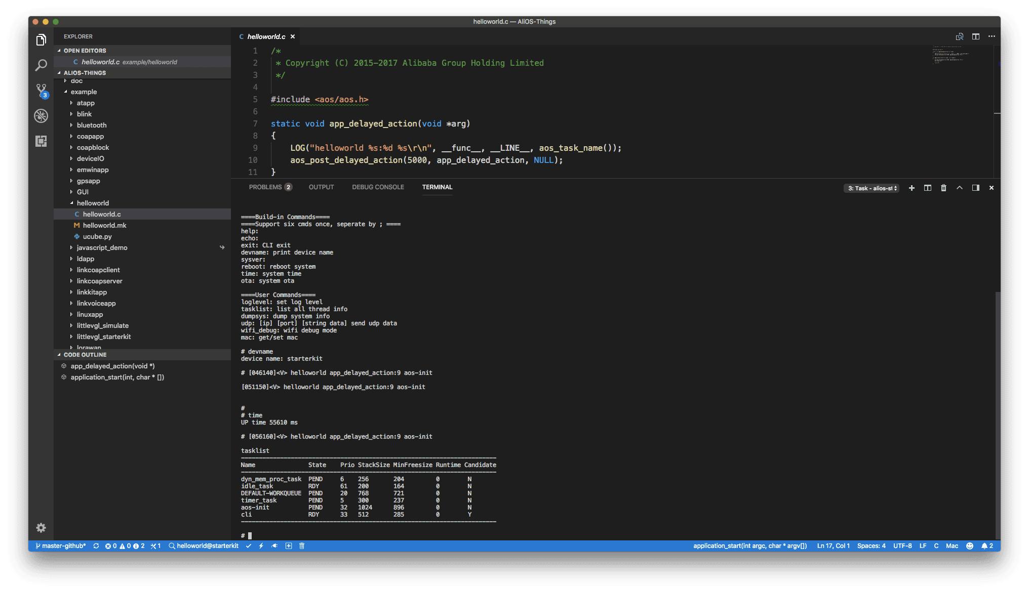 - 在 Visual Studio Code 中打开下载好的 AliOS Things 代码目录