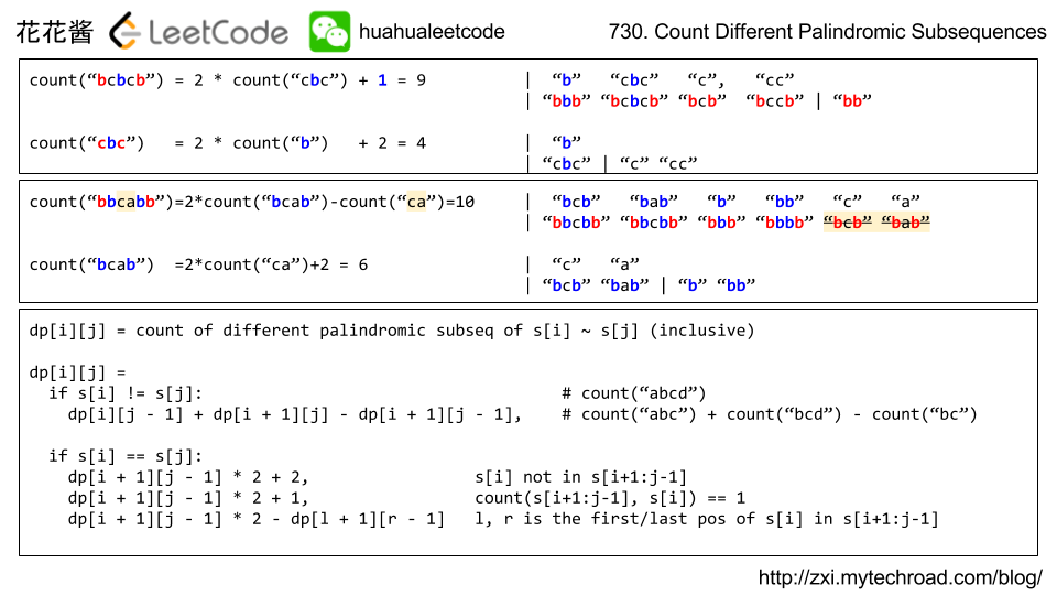 - 第二种思路(DP动态规划):定义dp[i][j]:若从i到j的字符串为回文,则为真(1),否则为假(0),那么dp[i][j]为真的前提是:头尾两个字符串相同并且去掉头尾以后的字串也是回文(即dp[i+1][j-1]为真),这里面要注意特殊情况,即:去掉头尾以后为空串或只有单独一个字符,所以如果j-i<3,并且头尾相等,也是回文的。于是便得出下边的关键DP代码: