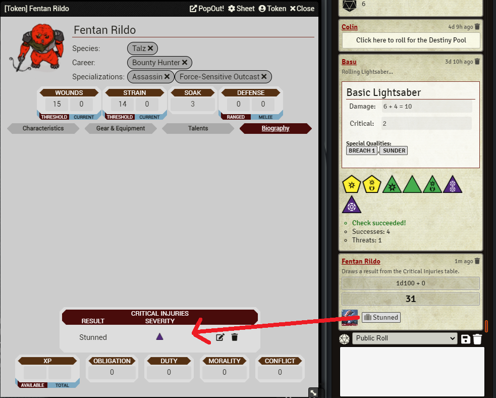 NOTE: Make sure the critical tables are set up first: https://github.com/StarWarsFoundryVTT/StarWarsFFG/wiki/Creating-Critical-Tables