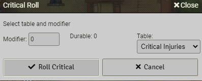 To use it, select a token and run the macro. It will default to Critical Injuries or Critical Damage depending on the type of token selected, but you can override it in the popup.