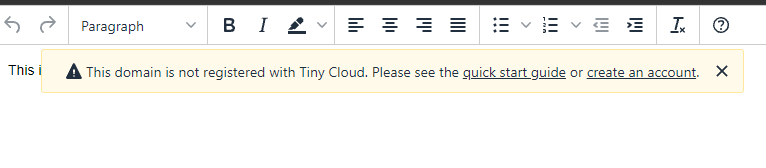 - 이 도메인은 동록되지 않았습니다... 라는 메세지를 없애는 데 사용(Tiny Cloud를 사용할 때)