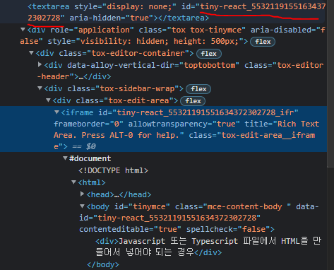 />- iframe으로 에디터가 들어가지 않고 지정한 태그로 에디터가 들어갔다.