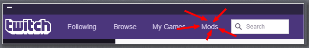Jako první v Twitch aplikaci likneme na "Modifikace/Mods"