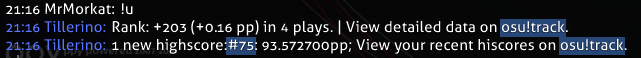 Please note that we worked together with Ameo to make this cross-bot-experience happen. If you want to use the osu!track API as well, please ask him for permissions first 😃