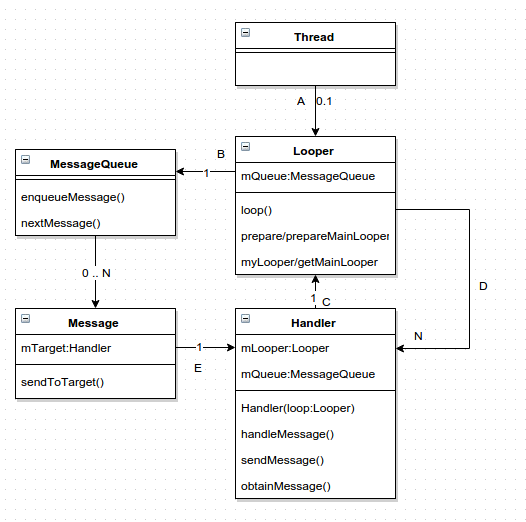 Looperand oneMessageQueue Looper's thread can associate with multipleHandler