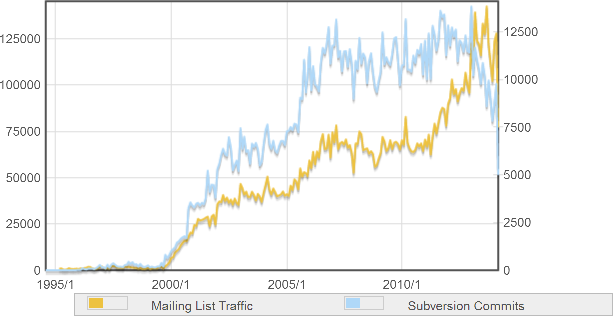 Aktivität innerhalb der durch die Apache Sofware Foundation verwalteten Projekte [7]