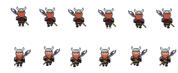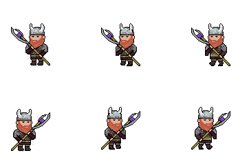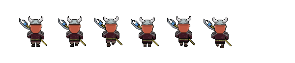 Contains the characters walking animation with a scepter for the different directions; left, right, up and down. These were created using the Team 1's character designs and scepter's design from Team 5, and I modified them to match the character movement with the weapon.