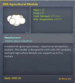 - 5x MKS Agriculture Modules (each one supports two Kerbals)