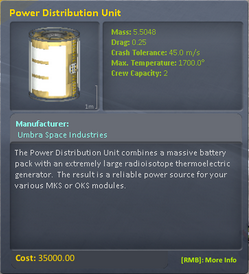 The PDU is essentially a small nuclear reactor, capable of providing enough power to run a fully functional base or station. It comes with a supply of Enriched Uranium which is gradually turned into Depleted Uranium over time, and scales production to meet demand.