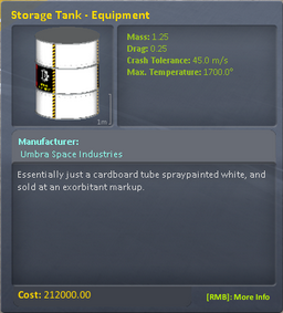 Also, since all OKS modules slowly consume spare parts and repair supplies, you will want a stockpile of ReplacementParts. PatchKits, and RepairParts. A ton of each will last us over a decade, so this is a pretty easy requirement. These can be launched with the Storage Tank - Equipment.