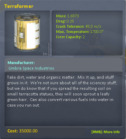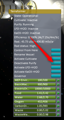The Terraformer is deprecated, and its purify function has been taken over by the Kerbitat in both OKS and MKS configurations.