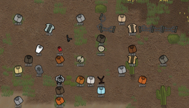 - Camouflage: Hostile pawns that wear this apparel will have their name hidden from the player, and they cannot be manually selected while on the map.