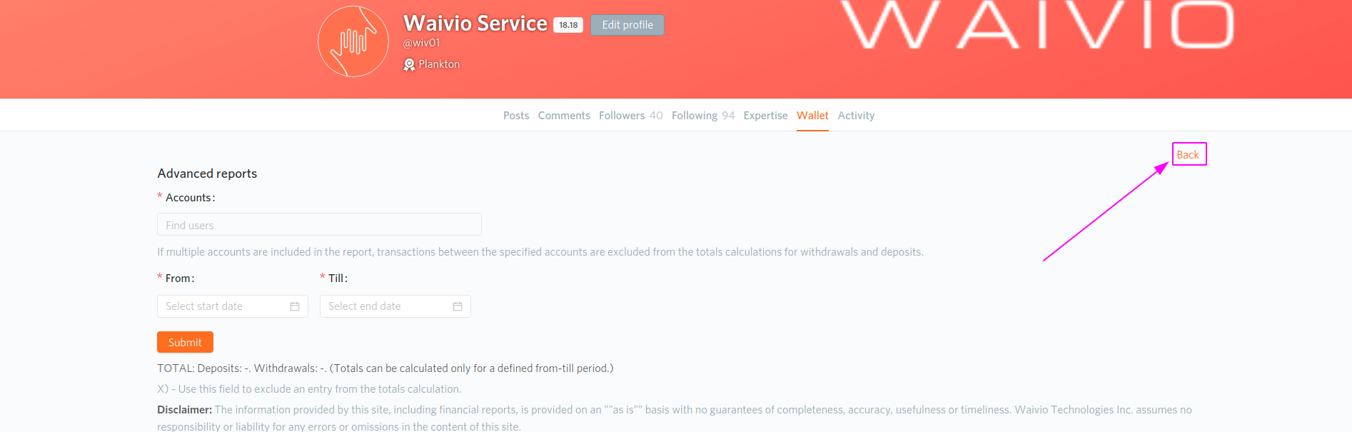 Advanced report - Waiviogit/waivio GitHub Wiki