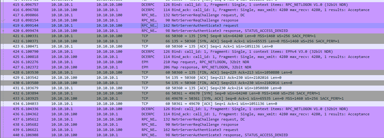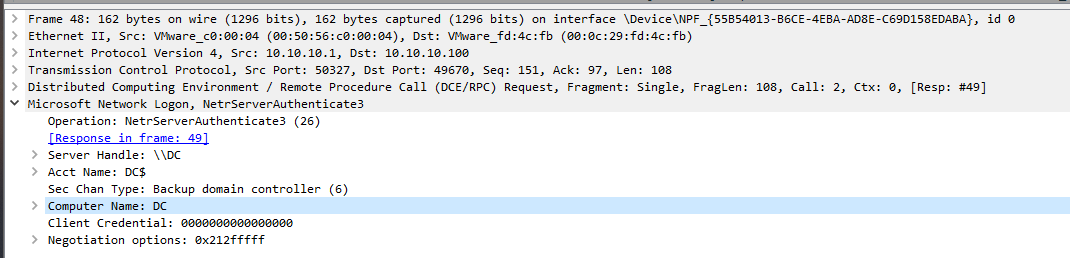 Description: Do take note of multiple packets using prootcol RPC_NETLOGON & DCERPC with: Client Credential: 0000000000 Server Credential: 0000000000