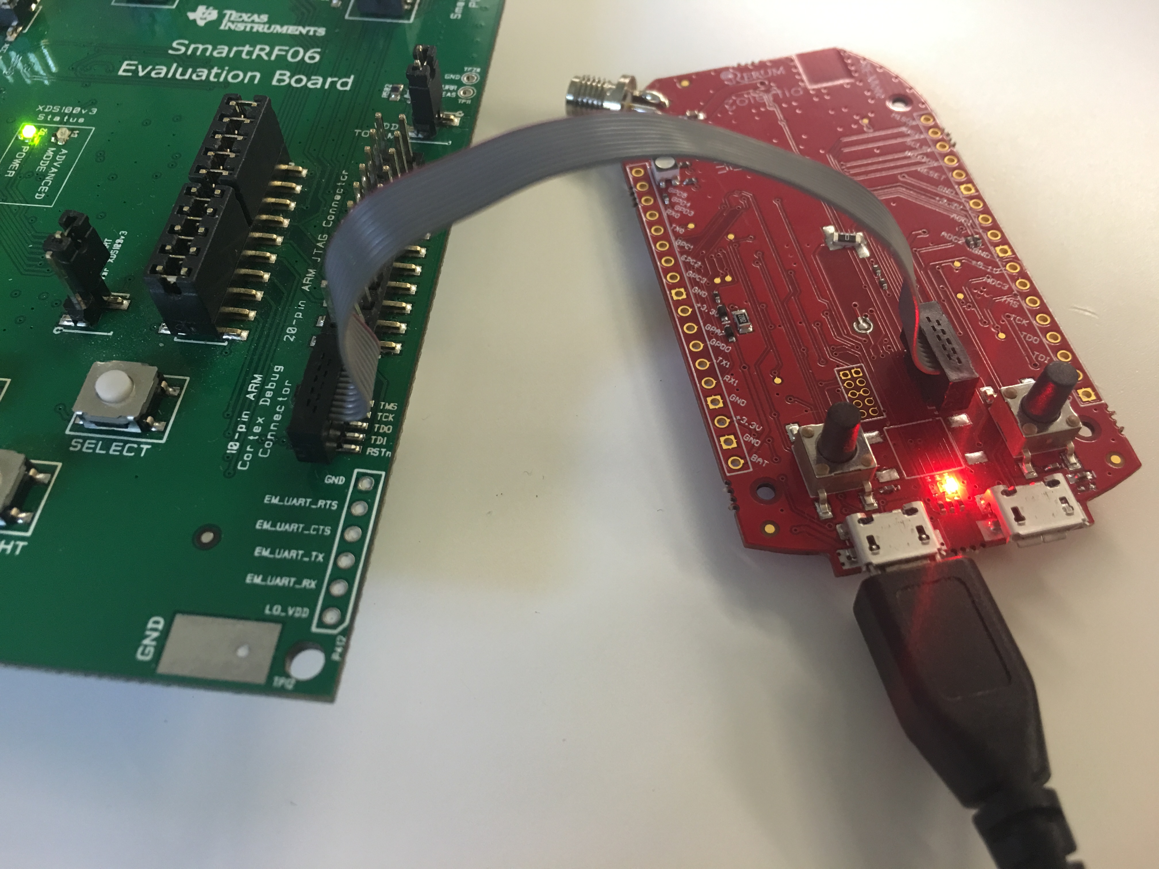 The RE-Mote has a JTAG connector to flash and debug using a JTAG probe. Note in the photo below it shows the CC2538 JTAG connector, the other non-populated connector corresponds to the on-board PIC.