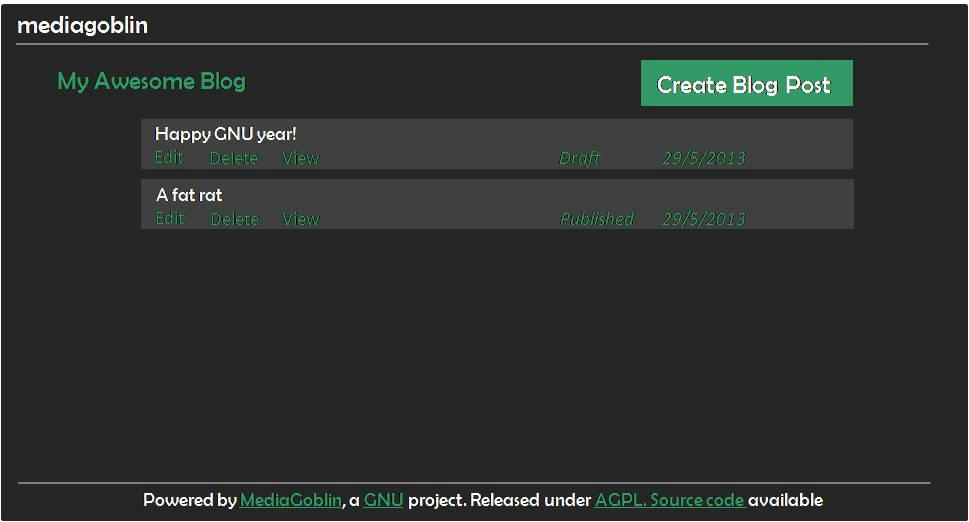 I found the MediaGoblin community to be very helping and everyone was ready to help me whenever I got stuck. The experience of working on MediaGoblin has been very pleasant. I hope to continue working on blogging system after GSoC and help in maintaining and extending it.