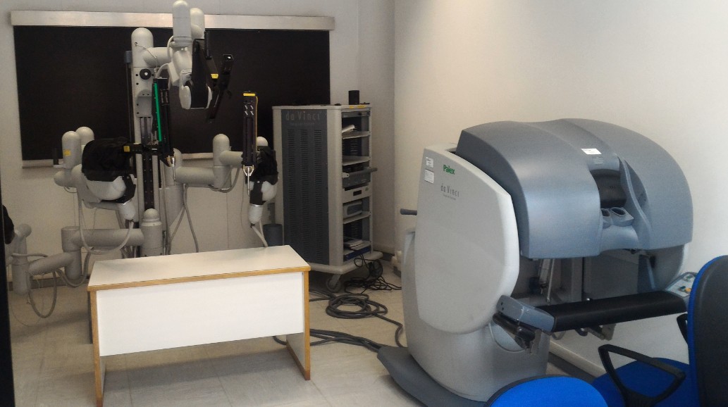 It could take a while to import all the files. When the process is finished, you should see the model of the daVinci robot and a template surgical scene. Double-click on ROBOT in the hierarchy panel to see the virtual robot.
