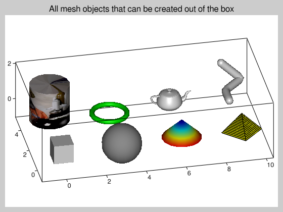 """ This example shows all mesh objects that can be created out of the box.