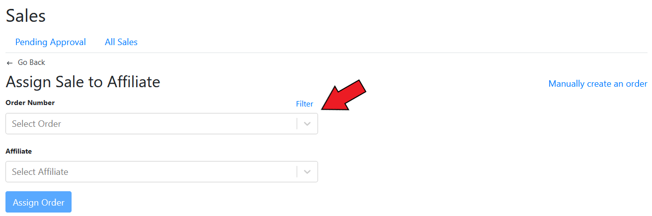 GoAffPro provides you with the option to assign a sale to an affiliate.