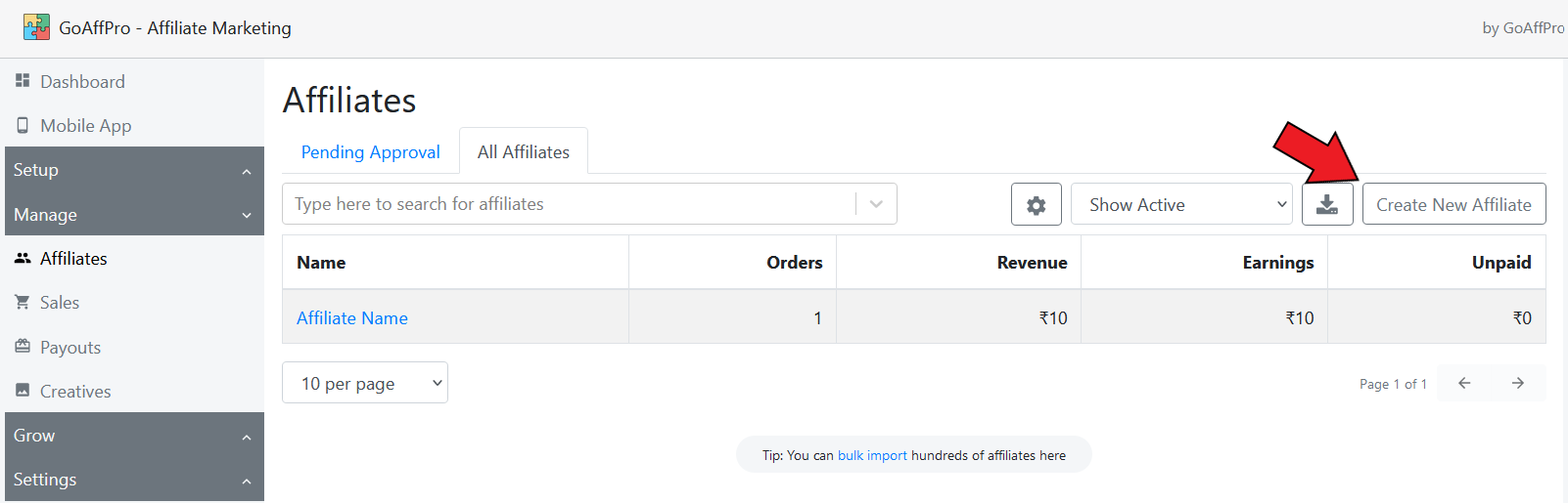 GoAffPro provides you with the option to create affiliate accounts manually.