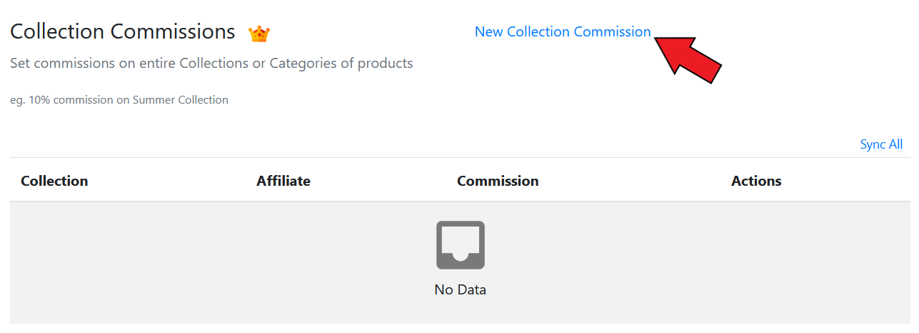 The collection commission option allows you to set up different commission rates for collections or categories of products. You can click on New Collection Commission to set up commission rates for collections.